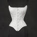 Corset sob medida com decote canoa modelagem em pontas , nesgas dos seios (gussets) e fechamento frontal em busk exclusivo Madame Sher.