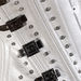Corset underbust sob medida em couro perolizado com aplicação de fivelas metálicas e strass.